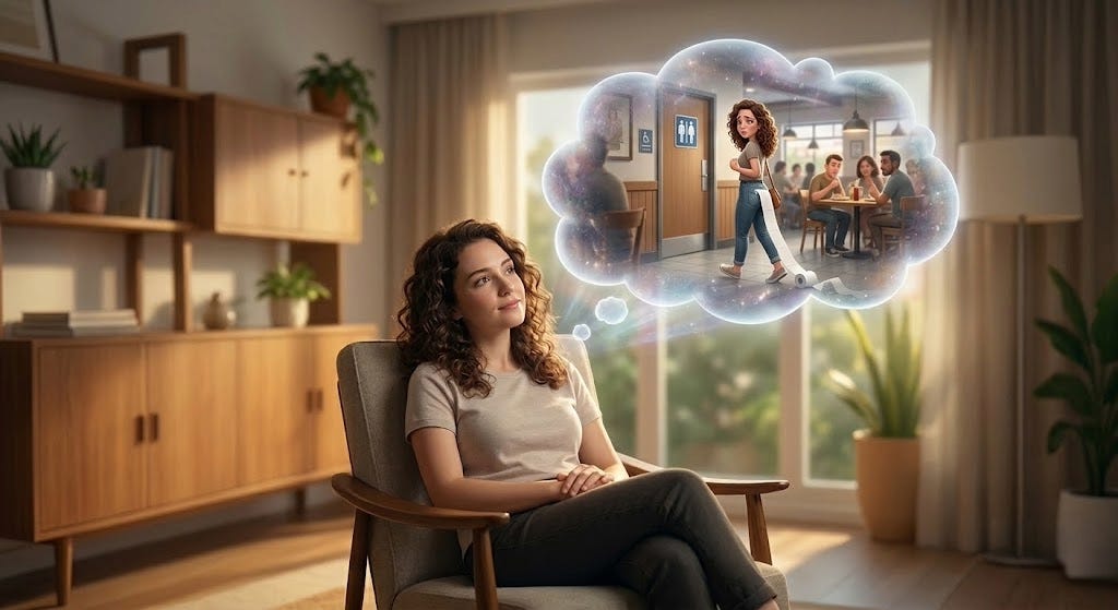 The good news? You don’t have to “fix” the past or “change” your personality. You just have to realize you’re watching a fictional drama. Your innate “okay-ness” is the screen the movie is playing on—and the screen is always perfectly fine, no matter how awkward the plot gets.